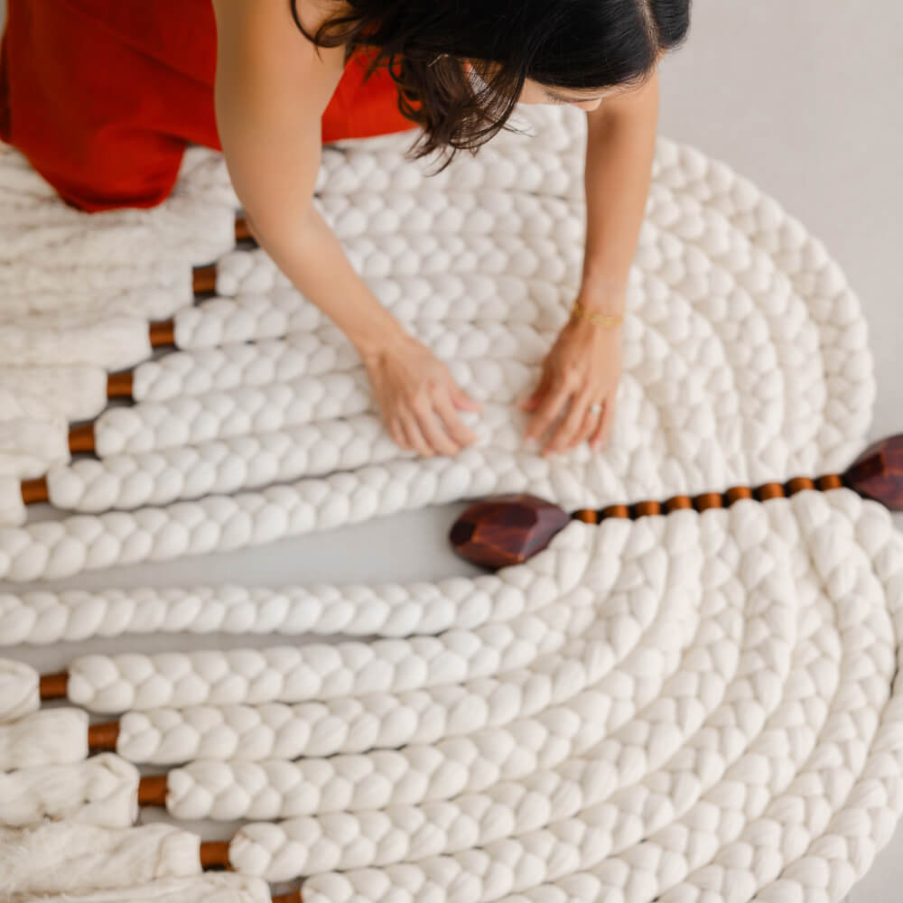 Bajo la dirección creativa de Daniela y nuestro equipo de artesanas, quienes experimentan con técnicas tradicionales y distintos materiales, elevan el proceso creativo de NAVIR poniendo de manifiesto la creatividad, la emoción y la historia que cuenta cada pieza.